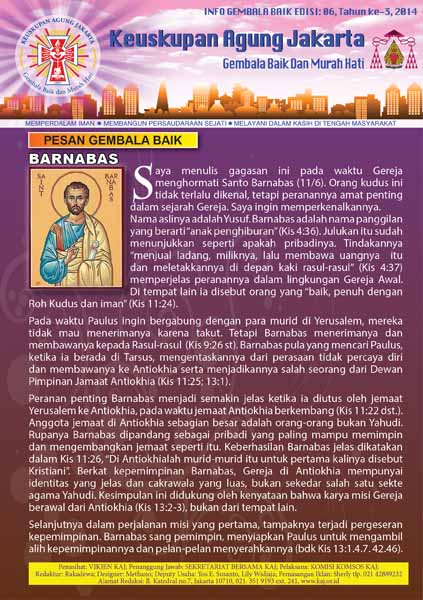 Dengan penuh syukur dan sukacita kita terima amanat perutusan Tuhan, “…. pergilah, jadikanlah semua bangsa murid-Ku dan baptislah mereka dalam nama Bapa dan Anak dan Roh Kudus (Mat. 28:19). Agar Kerajaan Allah hadir secara nyata, dan Injil Kerajaan Allah tetap diwartakan, Kristus mendirikan Gereja-Nya, himpunan orang beriman Kristiani berkat baptisan air. Baptisan air tersebut menjadikan seseorang anggota Gereja, tubuh Kristus. Kita berdoa dan bersyukur, karena rahmat-Nya Gereja tumbuh, berakar, mekar dan berbuah di bumi Indonesia. Kristus membaptis dengan Roh Kudus (bdk. Mrk. 1: 8),