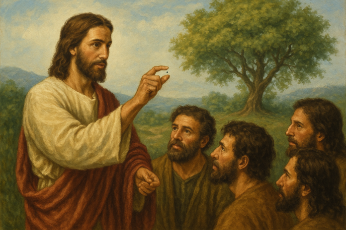 Sekali peristiwa setelah Yesus menyampaikan beberapa nasihat, para rasul itu berkata kepada-Nya: ”Tambahkanlah iman kami!” Jawab Tuhan: ”Kalau sekiranya kamu mempunyai iman sebesar biji sesawi saja, kamu dapat berkata kepada pohon ara ini: Terbantunlah engkau dan tertanamlah di dalam laut, dan ia akan menuruti perintahmu.”