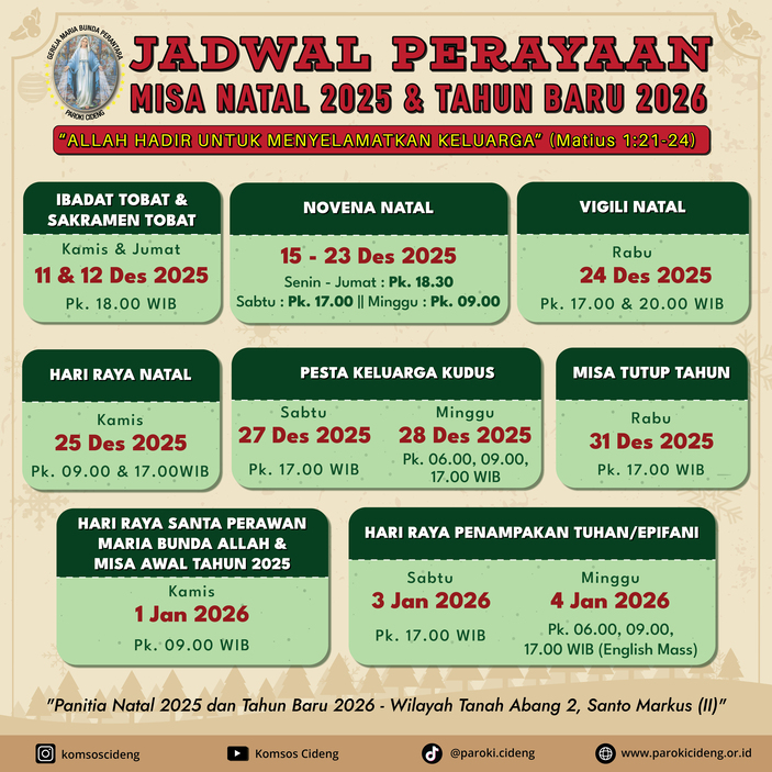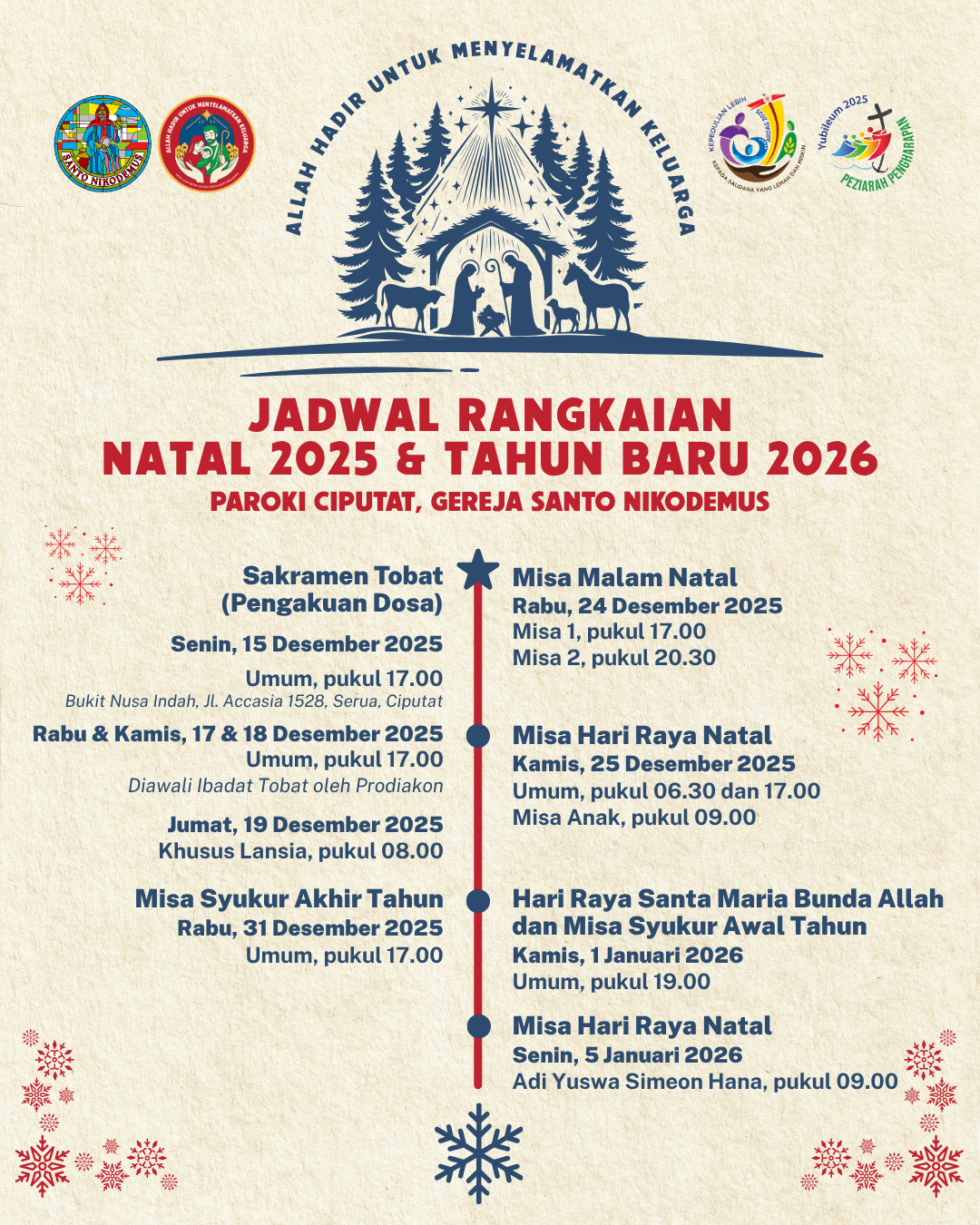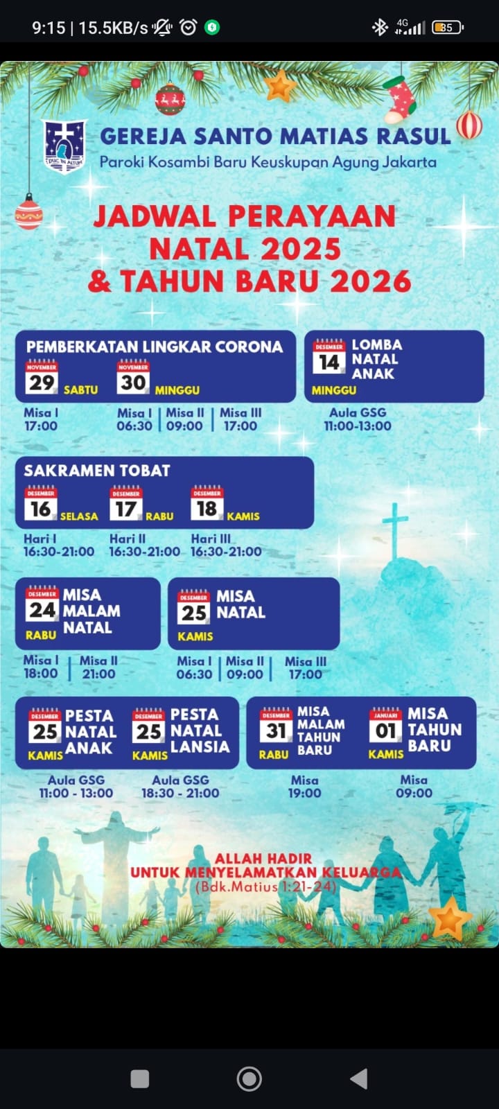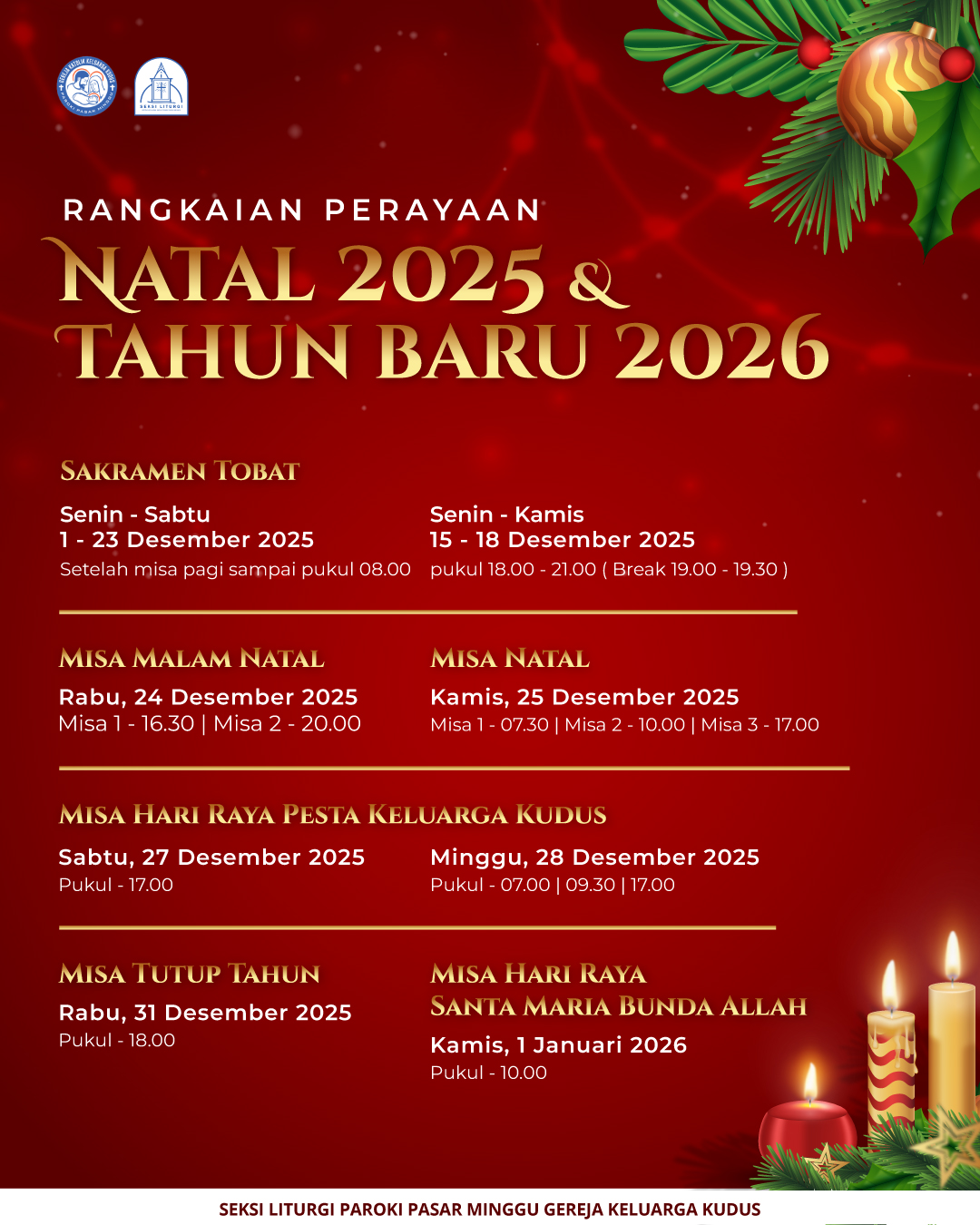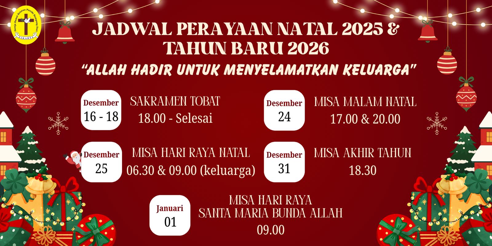 JADWAL LENGKAP MISA NATAL 2025 DAN TAHUN BARU 2026 SEMUA PAROKI DI KAJ