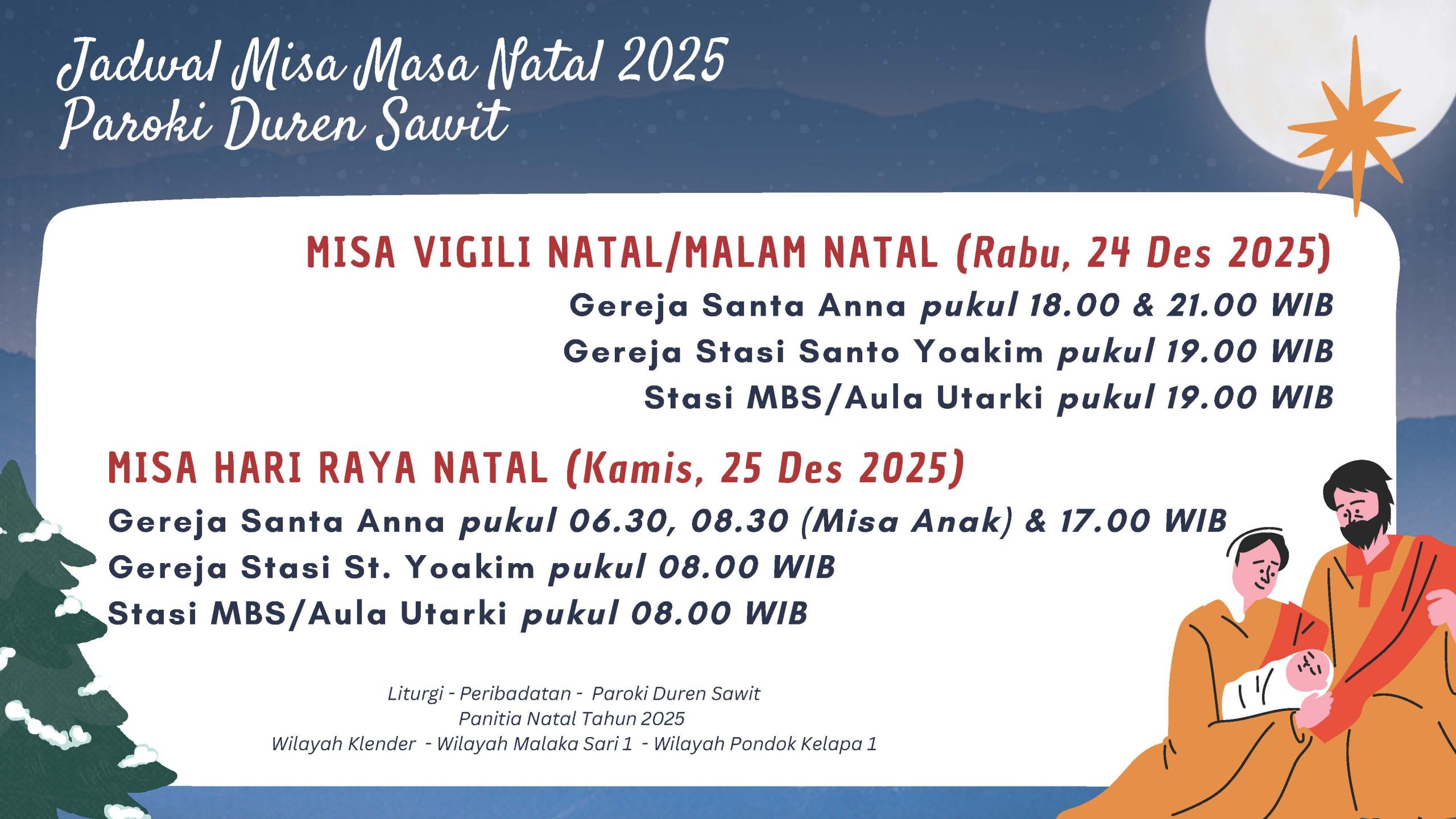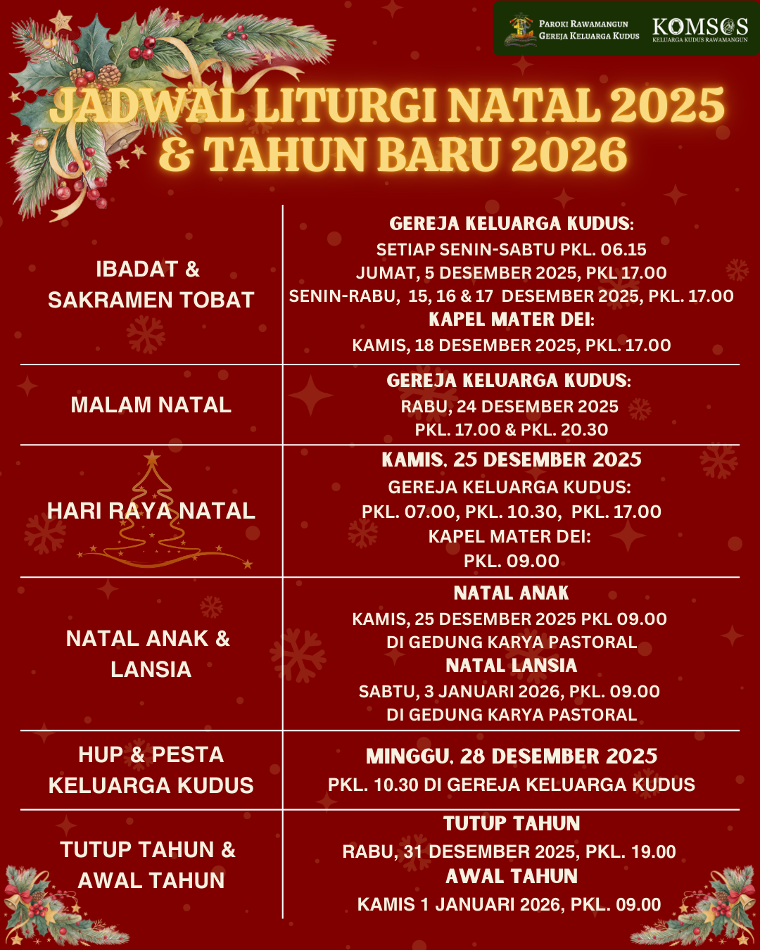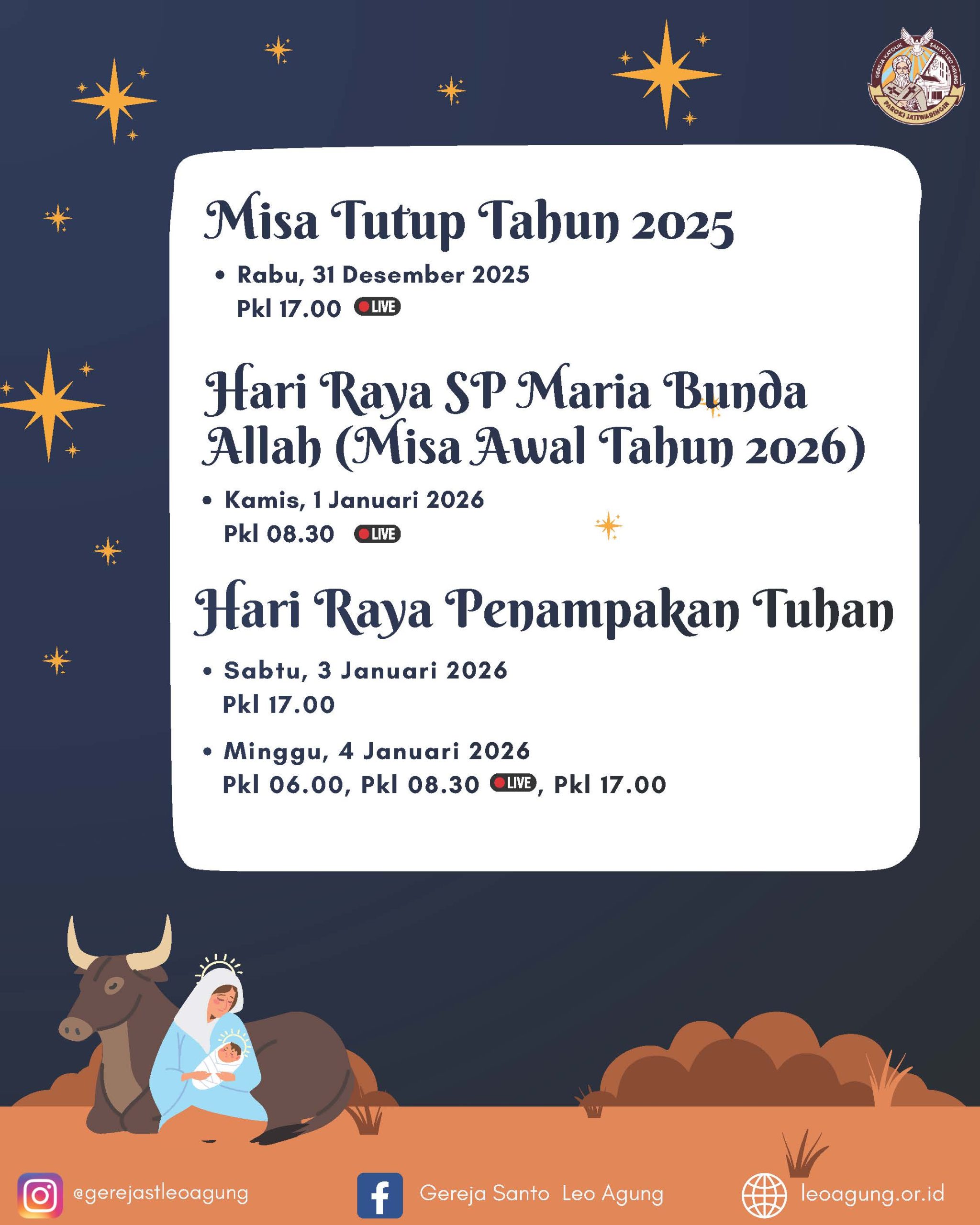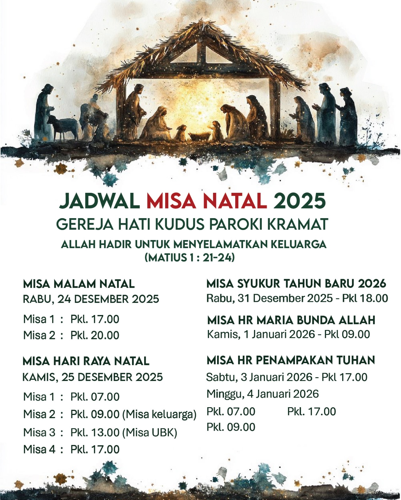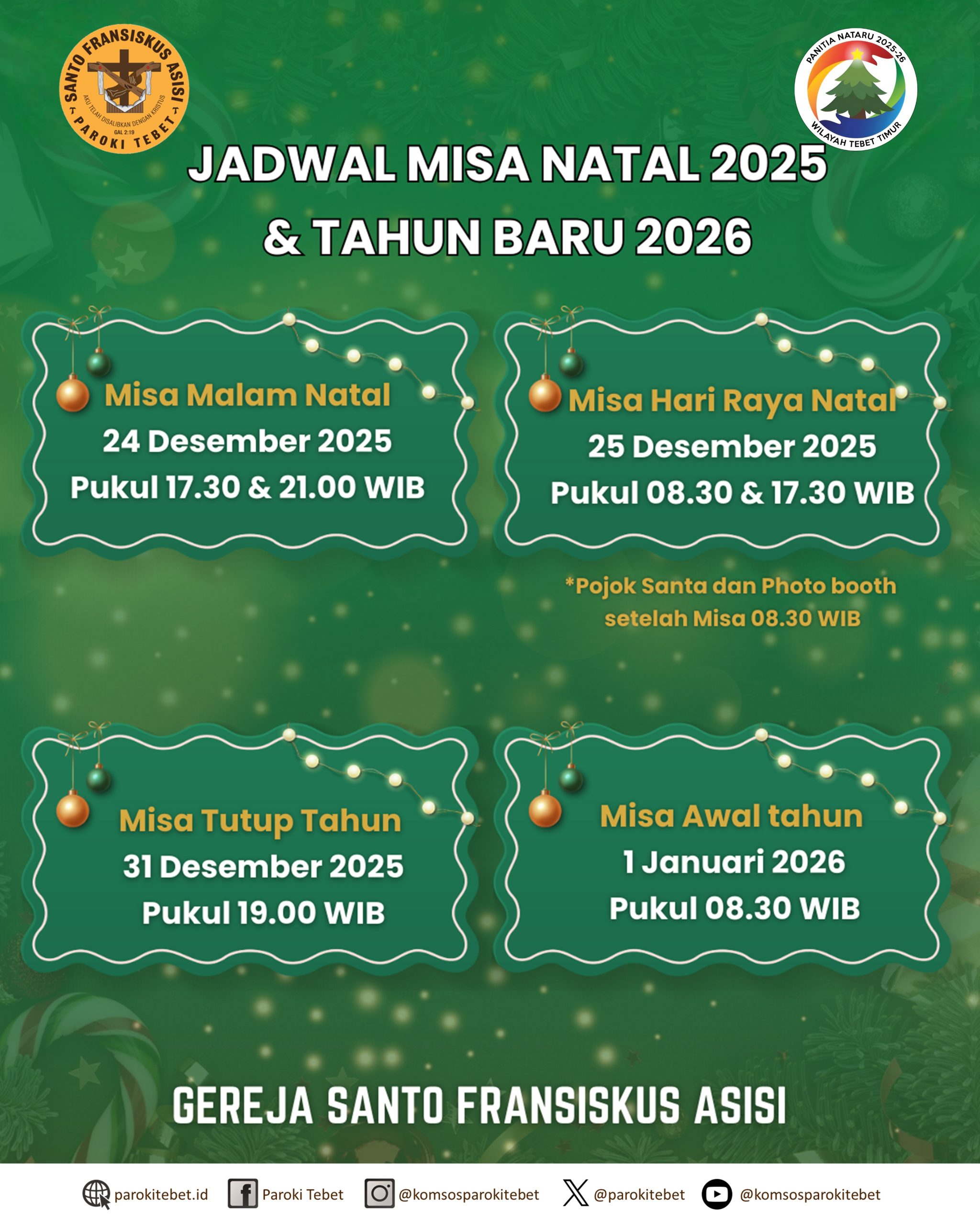 JADWAL LENGKAP MISA NATAL 2025 DAN TAHUN BARU 2026 SEMUA PAROKI DI KAJ