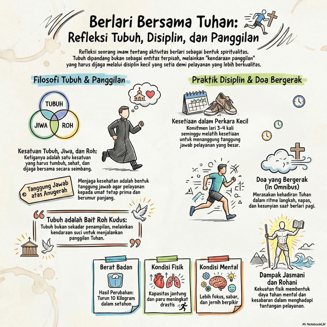 Setiap pagi, sebelum kota Jakarta benar-benar bangun, saya sudah mengikat tali sepatu dan melangkah keluar. Bukan karena ingin menjadi atlet. Bukan karena mengejar medali. Saya berlari karena saya adalah seorang imam — dan saya percaya bahwa tubuh ini pun adalah bagian dari panggilan saya.